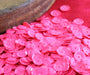 Loose cup sequins are perfect for embellishing all kinds of garments and projects. They are great for shoes, costumes, theatrical productions, pageants, bridal wear, and more. These faceted sequins are made from mylar and are available in lots of great colors. The center features an octagon shape with a center hole that can be used with thread or thin yarn. These sequins are not flat. It forms a slight cup shape. Dry clean or hand wash only.