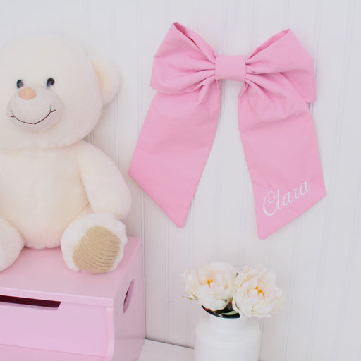Personalized Velvet Ribbon Bow - Embroidered Name
