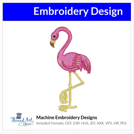 Flamingo Embroidery Design Instant Download Cute Beach Summer - 3 Sizes - 8 Formats