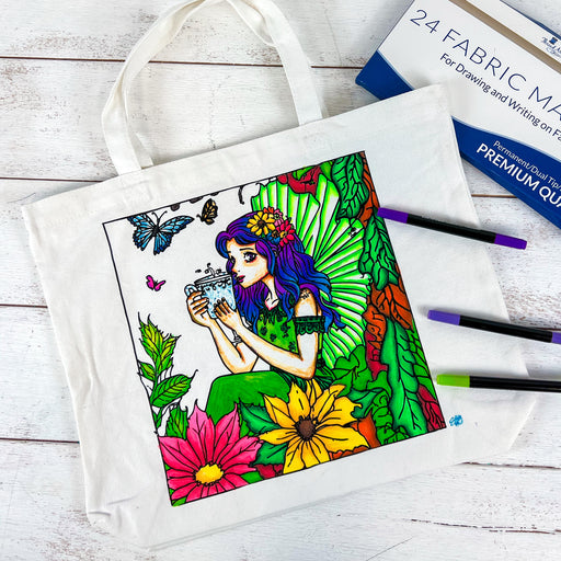 In stockColor You Own Tote Bag Kit with Fabric Markers! This set includes a preprinted white tote bag and our 24 color fabric marker set. With both ultra-f...