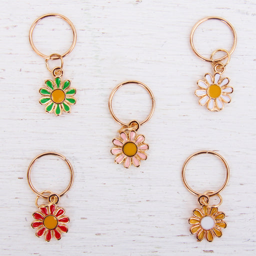 5 Daisy Flower Enamel Crochet Stitch Markers