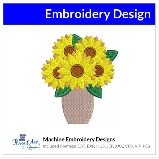 Sunflower Vase Embroidery Design Instant Download Cute Floral Vase - 3 Sizes - 8 Formats - ThreadArt