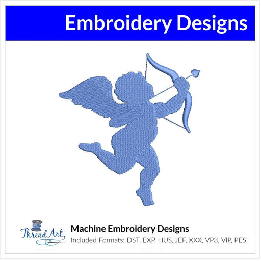 Single machine embroidery design set with 5 different sizes of cupid. Set includes 3", 3.5" 4", 4.5" and 5" includes 8 popular formats: DST, EXP,...