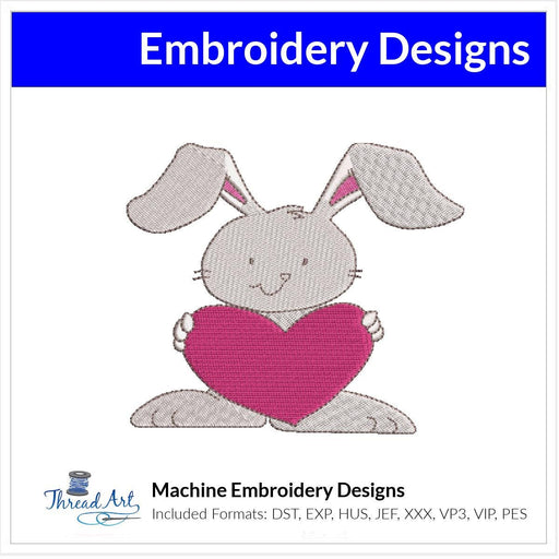 Valentine Bunny with Heart Machine Embroidery Design Instant Download - 5 Sizes - 8 Formats - ThreadArt
