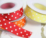 Grosgrain dots ribbon has an even, textured rib pattern. Single sided print in pure white. 100% polyester.