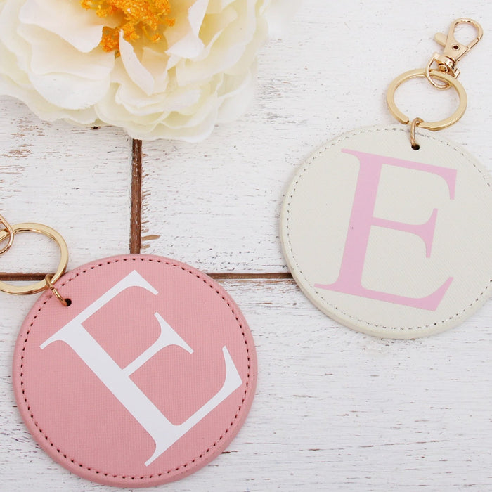 Personalized Circle Keychain Bag Pendant - Pink, Ivory, or Black