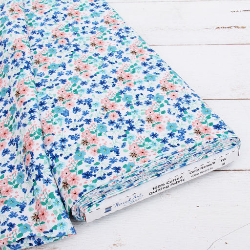 Premium Cotton Quilting Fabric Sold By The Yard - Confetti Brights Collection - Blue Vines