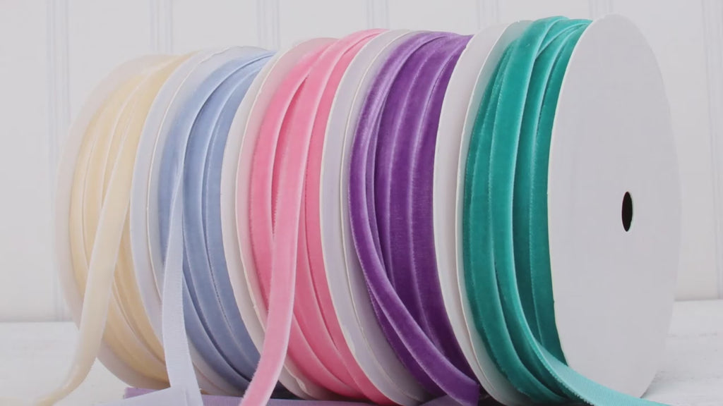 Featuring a rich, vibrant hue, this skinny 1/4" velvet ribbon is perfect for wedding bouquets, bridal showers, and enhancing the beauty of gift wrapping. Made with premium polyester, our single face ribbon has a luxurious, plush texture that adds an elegant touch to any creation.