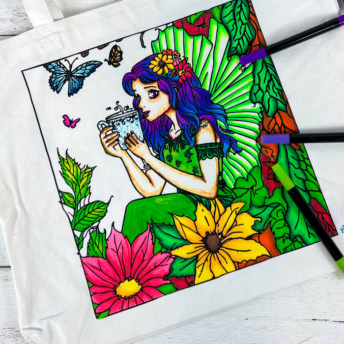 Get ready to unleash your creativity and make a fashion statement with our Color Your Own Tote Bag Tea Fairy Design!