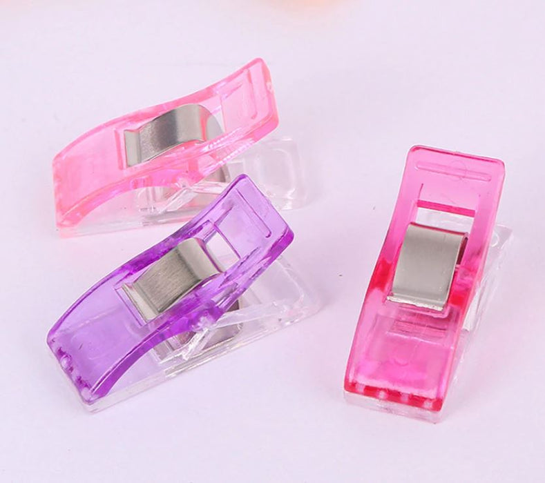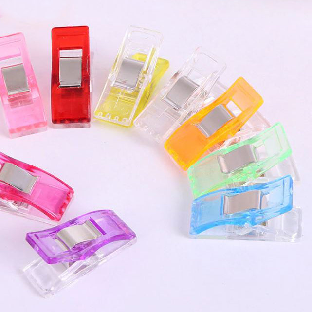 A colorful bag of 10 plastic clips to hold fabric for sewing, quilting and crafts. These little clips are great for keeping your fabric in place will you work. The perfect alternative to pins. And they are cute! Easy to put on and take off. Color assortment may vary. Size is 2.7x1x1.5cm.