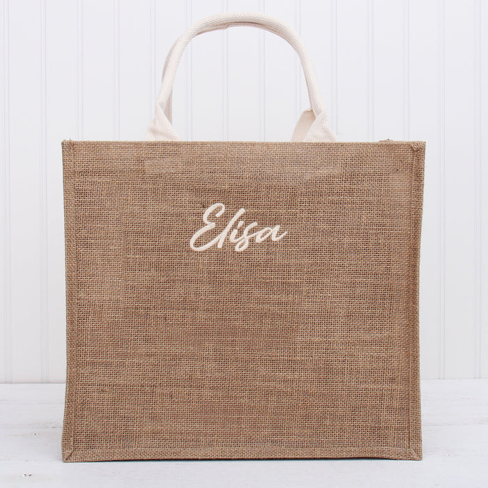 Personalized Jute Tote Bag - Embroidered Gift Bag