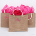 Premium jute burlap tote bag embroidered with high quality glossy thread in the name and color of your choice. The cutest embroidered gift bags for your special event.