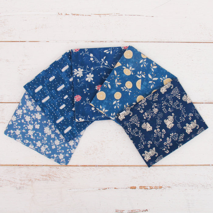 Fat Quarter Bundle - Five Dark Blue Precut Cotton Fabrics