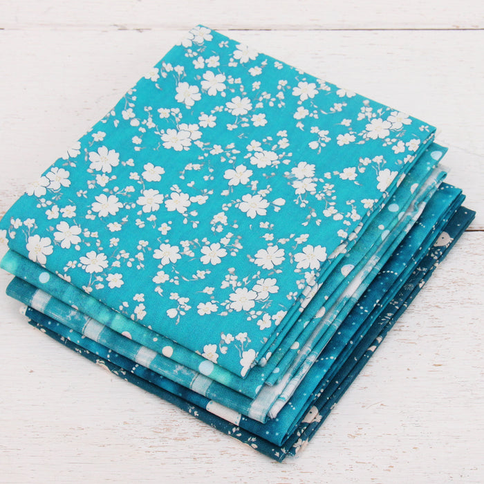 Fat Quarter Bundle - Five Teal Precut Cotton Fabrics