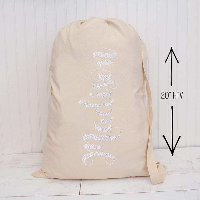 Glitter style Heat Transfer Vinyl Film. 20" wide, sold by the yard. Enter the yardage you desire per color and you will receive a continuous roll of that color. Create your own design and transfer it directly on to any cloth item of your choice such as t-shirts, bags, cushion covers, pants, jackets, etc. Works great with Silhouette, Cameo, or any craft cutters etc.