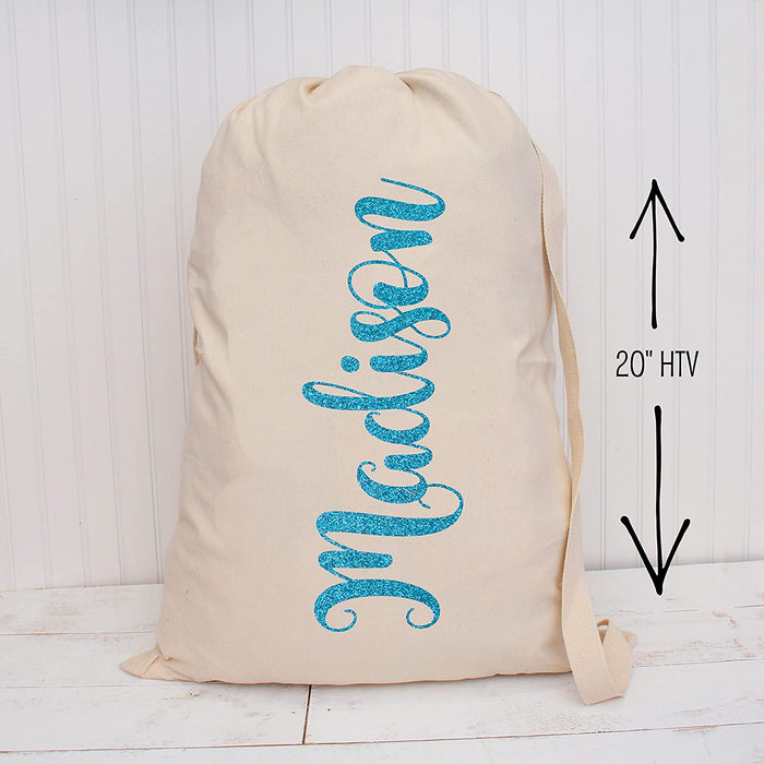 Glitter style Heat Transfer Vinyl Film. 20" wide, sold by the yard. Enter the yardage you desire per color and you will receive a continuous roll of that color. Create your own design and transfer it directly on to any cloth item of your choice such as t-shirts, bags, cushion covers, pants, jackets, etc. Works great with Silhouette, Cameo, or any craft cutters etc.