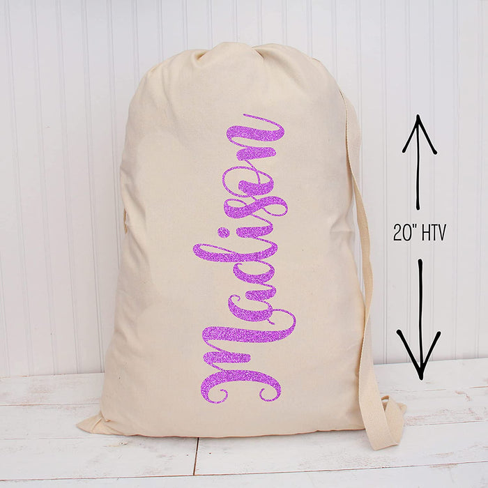 Glitter style Heat Transfer Vinyl Film. 20" wide, sold by the yard. Enter the yardage you desire per color and you will receive a continuous roll of that color. Create your own design and transfer it directly on to any cloth item of your choice such as t-shirts, bags, cushion covers, pants, jackets, etc. Works great with Silhouette, Cameo, or any craft cutters etc.