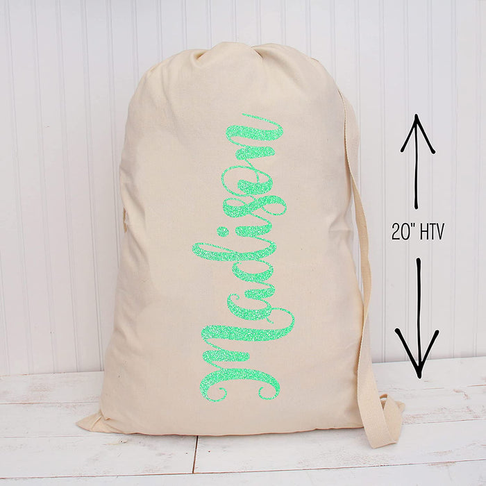 Glitter style Heat Transfer Vinyl Film. 20" wide, sold by the yard. Enter the yardage you desire per color and you will receive a continuous roll of that color. Create your own design and transfer it directly on to any cloth item of your choice such as t-shirts, bags, cushion covers, pants, jackets, etc. Works great with Silhouette, Cameo, or any craft cutters etc.