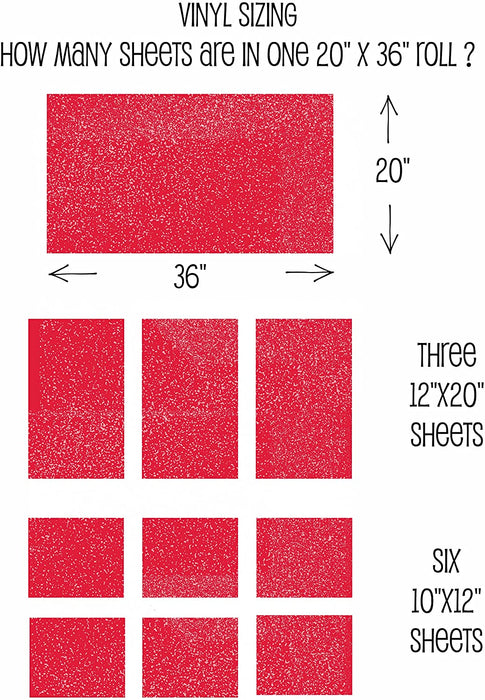Glitter style Heat Transfer Vinyl Film. 20" wide, sold by the yard. Enter the yardage you desire per color and you will receive a continuous roll of that color. Create your own design and transfer it directly on to any cloth item of your choice such as t-shirts, bags, cushion covers, pants, jackets, etc. Works great with Silhouette, Cameo, or any craft cutters etc.