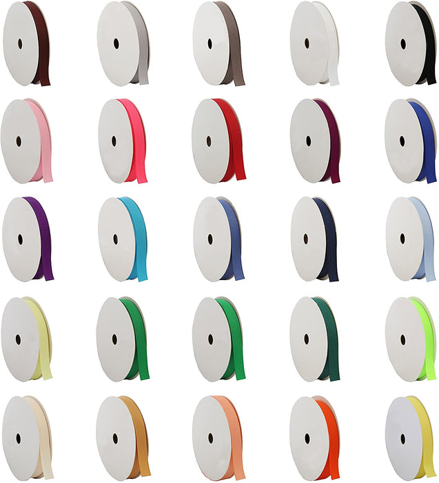Grosgrain ribbon has an even, textured rib pattern. 100% polyester.
