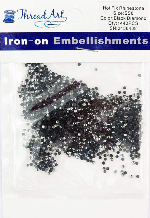 Hot Fix Rhinestones - SS6 - Black Diamond - 1440 stones