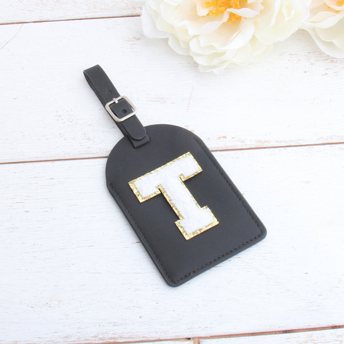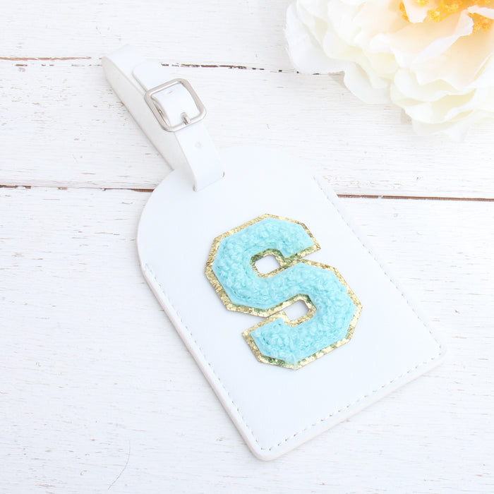 Monogrammed Luggage Tag With Chenille Letters - Pink, White, or Black