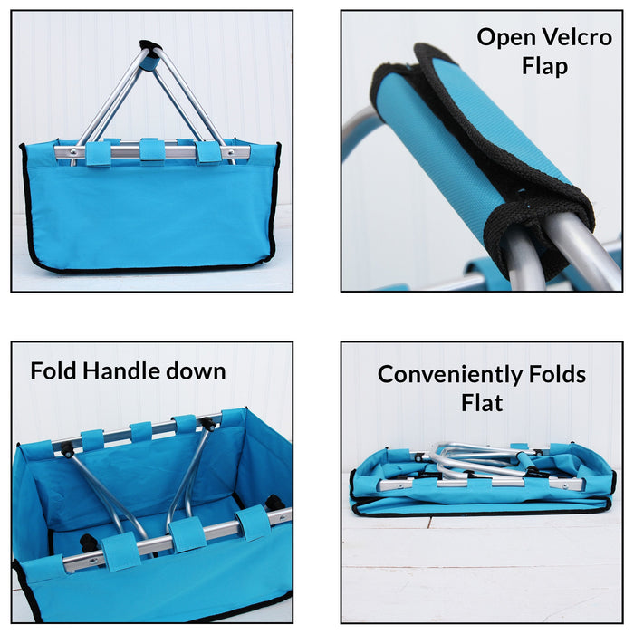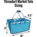Our Market Tote is the perfect go-to tote and a great gift idea. Collapsible style easily folds flat in seconds. Ready for your picnic, beach trip, or shopping. Ideal large size is 18" long, 11.5" wide, and 9" tall when folded open.