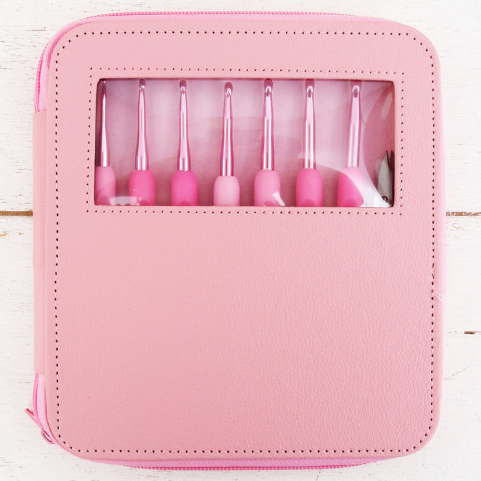 Pink Crochet Set - 9 Piece Kit With Case - Hooks from Sizes 2.5-6mm