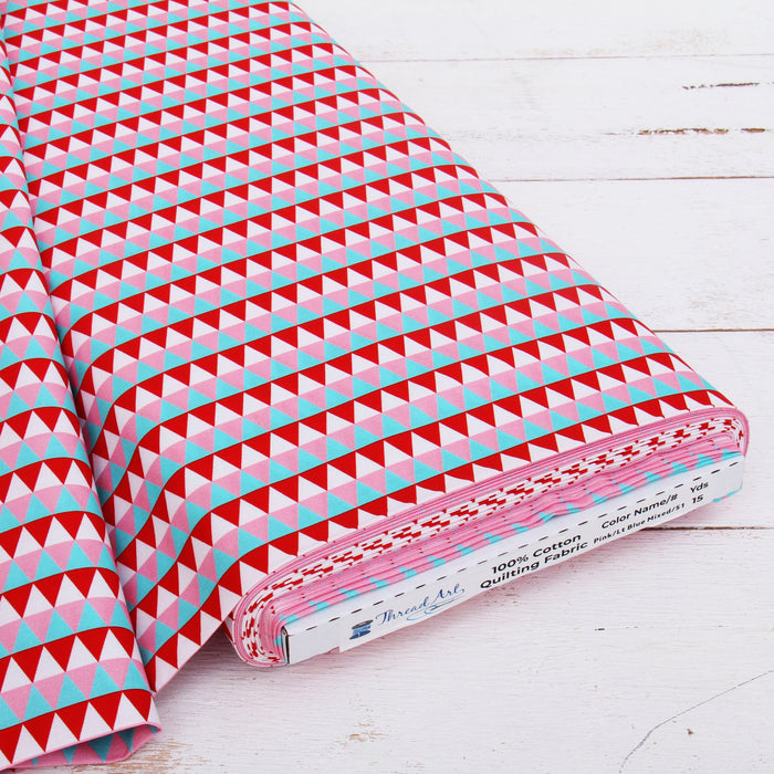 Premium Cotton Quilting Fabric Sold By The Yard - Patterned Hot Pink Light Blue