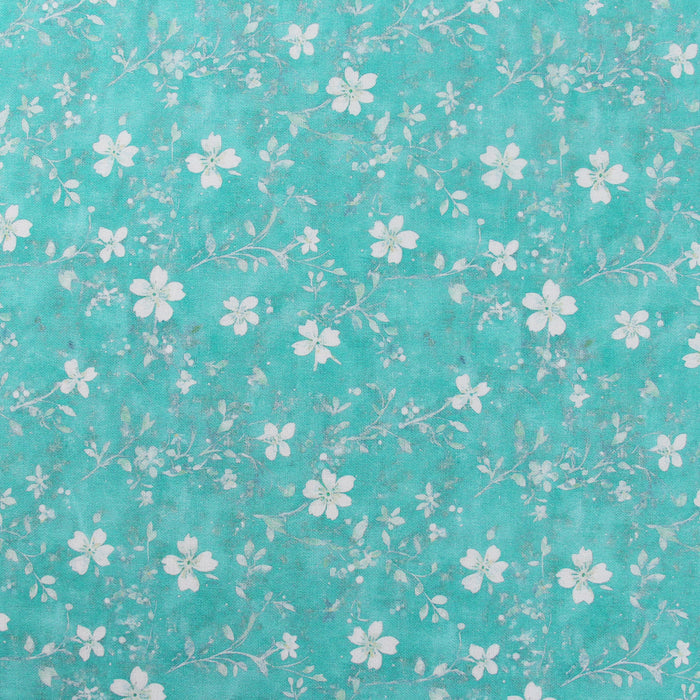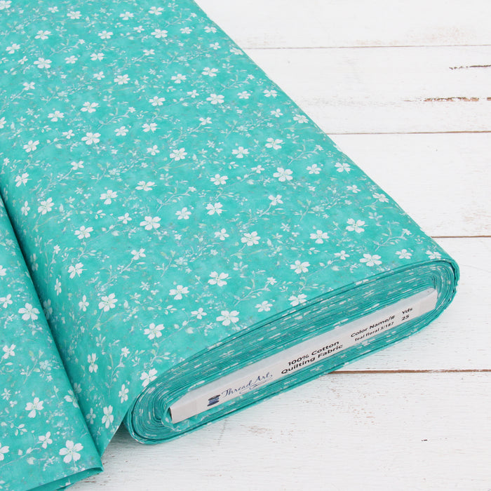 Premium Cotton Quilting Fabric Sold By The Yard - Vintage Threads Collection - Aqua Floral