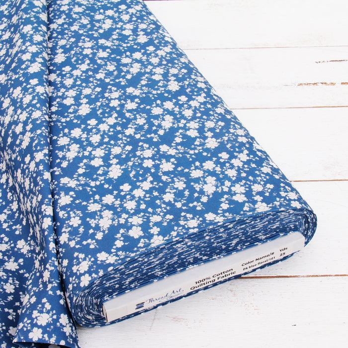 Premium Cotton Quilting Fabric Sold By The Yard - Vintage Threads Collection - Dark Blue Floral