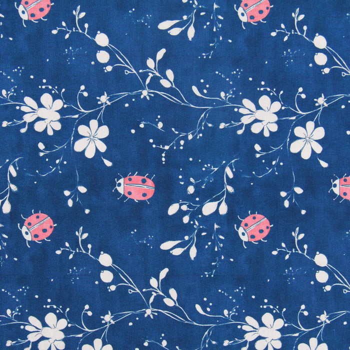 Premium Cotton Quilting Fabric Sold By The Yard - Vintage Threads Collection - Dark Blue Ladybug