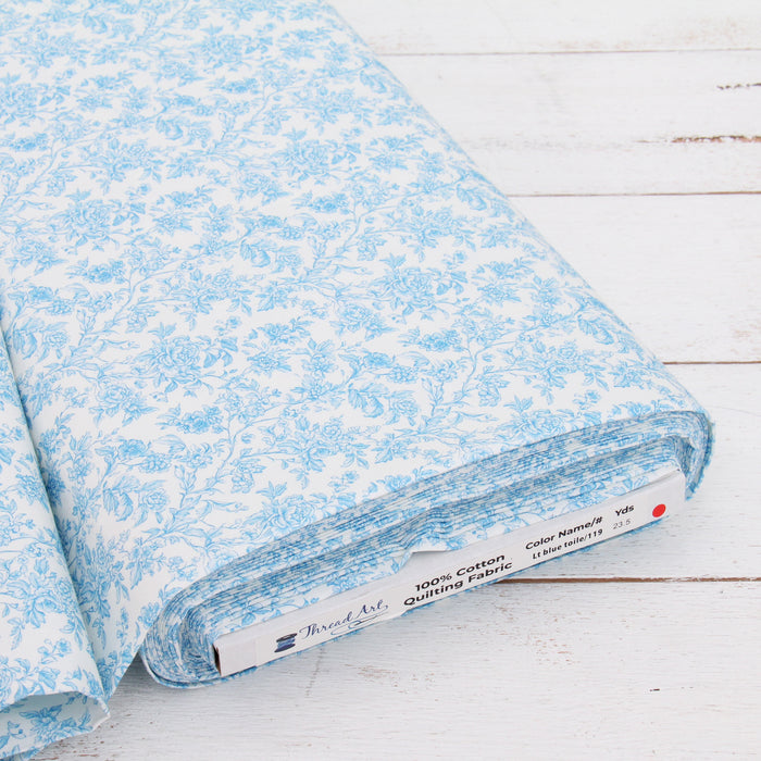 Premium Cotton Quilting Fabric Sold By The Yard - Vintage Threads Collection - Light Blue Toile