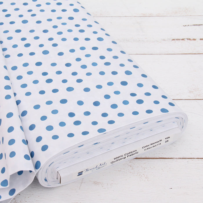 Premium Cotton Quilting Fabric Sold By The Yard - Vintage Threads Collection - Light Blue Dot