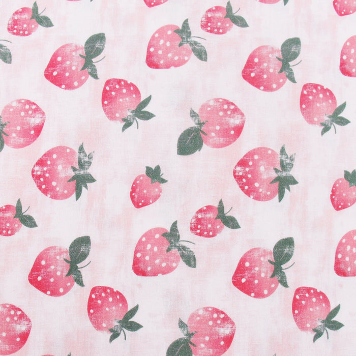 Premium Cotton Quilting Fabric Sold By The Yard - Vintage Threads Collection - Light Pink Strawberry