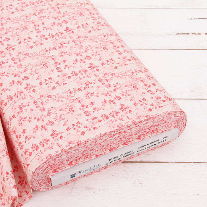 Premium Cotton Quilting Fabric Sold By The Yard - Vintage Threads Collection - Cream Burgundy Flower