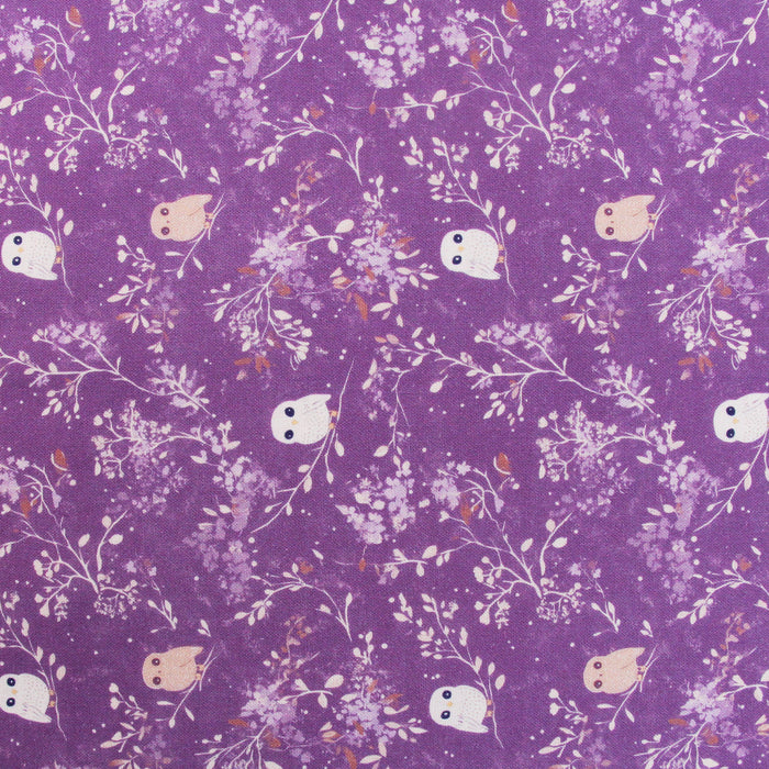 Premium Cotton Quilting Fabric Sold By The Yard - Vintage Threads Collection - Purple Owls